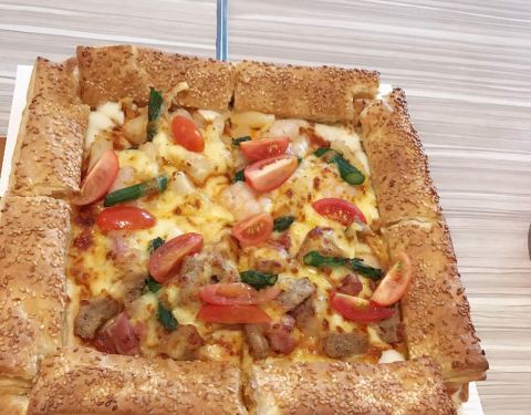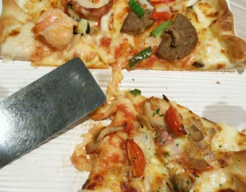 - 新品披萨还是很好吃的,蜜桃果汁很好喝,就是提拉米苏口感不是很好~今天人特别多,我的座位旁边还有饼屑~