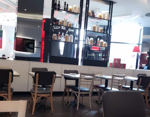 新品披萨还是很好吃的,蜜桃果汁很好喝,就是提拉米苏口感不是很好~今天人特别多,我的座位旁边还有饼屑~