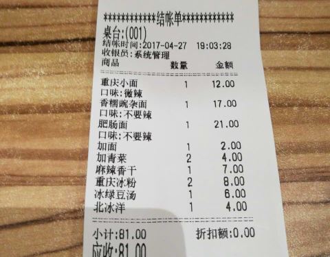 小面好吃,冰粉好吃,豌杂面好吃,麻辣抄手好吃。儿子每周至少吃一次。今天这顿3个人81块钱。