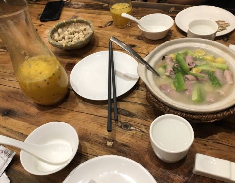 ...这单菜比较多,也下饭,个人也很喜欢,特别那个笋干 苦瓜小肠煲 夏天就喜欢吃苦瓜,小肠入味,很棒