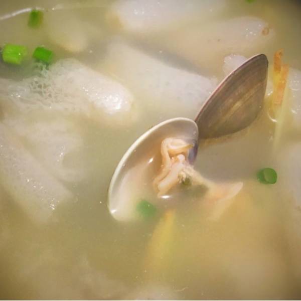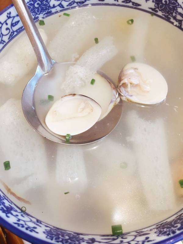 ✨闽南人爱喝汤,一碗好汤比菜还要重要,文蛤鲜美适合做汤,竹荪放了很多,口感脆嫩,汤清亮鲜美。