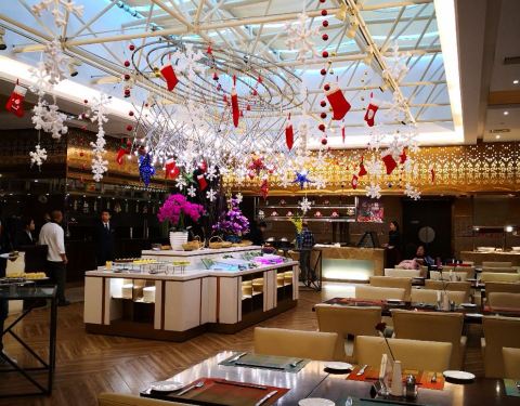 关注酒店微信可购买午餐券或晚餐券,会相对优惠一点。菜的品种略少了点,口味还是挺好的。牛排是招牌