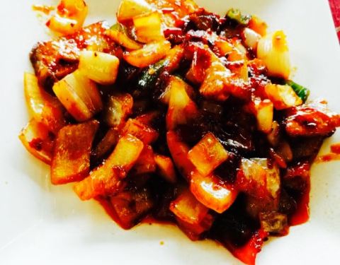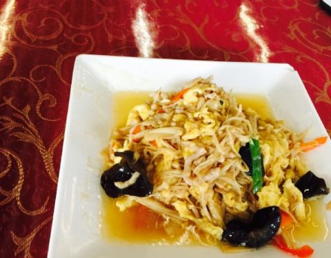 【鱼香肉丝】很小一小盘,可是很爽口,不辣。三个菜一共45,三个人吃的很饱。很棒