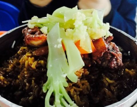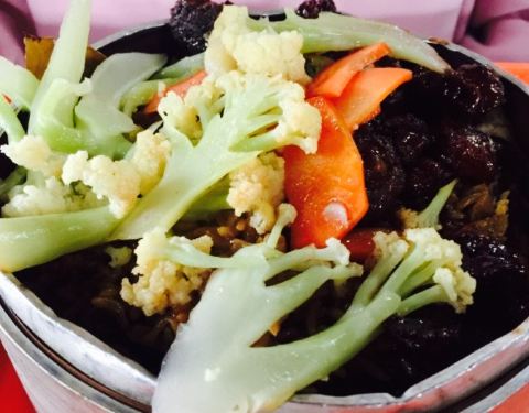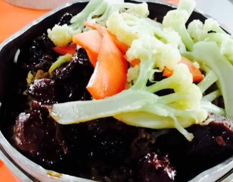六食堂现在出息了。之前对六除紫薯外并没有挂念的菜。这两次发觉还是不错的。小笼饭在面点窗口,中午才会供应,10rmb/份,配菜可选一荤一素。荤菜有鸡肉or排骨可选,素菜有花菜or小白菜可选,免费的番茄蛋花汤可自取。小笼饭里加有糯米,软软糯糯,很是开心,但是量有些大。砂锅牛肉应该是新品种,比较走心之作。牛肉量多,土豆软烂好吃,多吃两口会觉得好辣,可是还是很美味呀??。