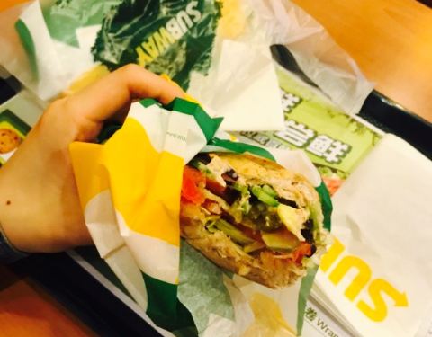 离我家特别近,也碰巧是最开心的一家赛百味。人不多,恬静,卫生。小店员都非常好,就在家门口,觉得很温和。人不多,所以她们也不着急,选酱选半天也没事,他们还一个一个讲,还给推荐。尤其每天晚上5,6点买一赠一,太实惠了。我最喜欢意大利经典,照烧鸡肉也不错,火腿的也ok。比较不喜欢牛肉的,对我来讲牛肉的味道淡了些。