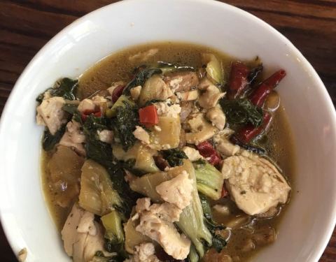 离家近,在一段丁字路里,老板一家人超好的。凑足三人来就来一份猪肚鸡,单身狗就来一份小面。反正有时间,想每样菜都来试一次。