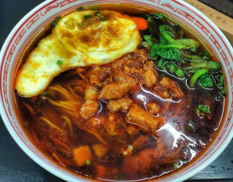 ...碧绿生青的鸡毛菜 红汤底 面条软硬适中 荷包蛋还有一丢丢流质 整体还行 附近就餐 又多了个去处