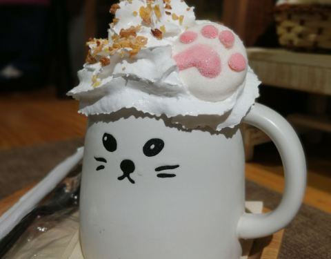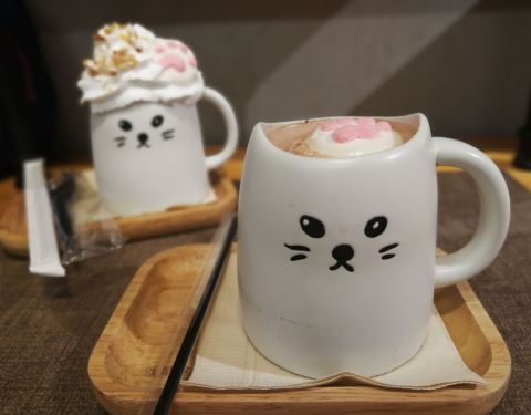 周末去大雄晚餐的时候经过这间店,就被里面的小可爱勾走了魂!如果当时不是有点晚,早就已经冲入去狂撸了。 难得今日早落班,一于gogogo! 因为是猫主题啡厅,入店前注意事项是必读的,且要同意后店员才会让你换鞋洗手入内。其实对于资深猫奴来说,这些规则都能理解。 店内楼上楼下的猫咪目测有近20只,或躺或玩或睡或吃,悠然自得散落各处,全都是纯种哦,还等什么,当然是撸呀…… 团了一个双人下午茶餐,二杯饮品加二份甜点。出品颜值棒棒哒,我的猫爪爆炸头雪泡杯和提拉米苏更是出乎意料地好!真心推荐 人均不到70, 有下次。