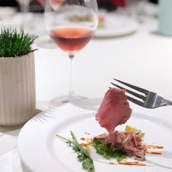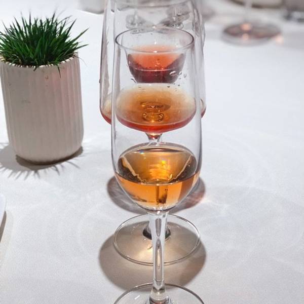 一半的成熟+一半的青春,在黑珍珠一钻餐厅——黑明赴一场粉红色的约会。90后新品桃红葡萄酒酒会🥂享受美酒与美食的完美邂逅。 果醋沙拉鲍鱼,果醋汁比例搭配的正好,不会太甜很清爽,鲍鱼处理的很干净,对半切开入口方便。 慢熏烤三文鱼腩,三文鱼的狂热爱好者表示这个食材怎么做都好吃,经过烤炙之后鱼肉渗出油脂,鱼皮Q弹,入口就是满满的胶原蛋白。 鸡汤汆贵妃蚌,蚌肉洗净用鸡汤汆熟,原汁原味鲜美脆甜的口感让人惊艳。 低温慢烤牛肉,沒有华丽的摆盘和鲜美酱汁的搭配,只需清爽的芝麻菜和新鲜的小青桔就使得整道菜锦上添花。 酸汤龙胆鱼,酸汤浓郁鱼肉细嫩粉条有嚼劲,一道绝佳的开胃菜。 干煎竹虫鸡,外皮焦香内里汁水充沛,姜丝的加入使鸡的香味挥发的淋漓尽致,吃完之后有点意犹未尽。 果香浓郁的桃红色液体让人无法抗拒,美酒配美食这个真的可以有。