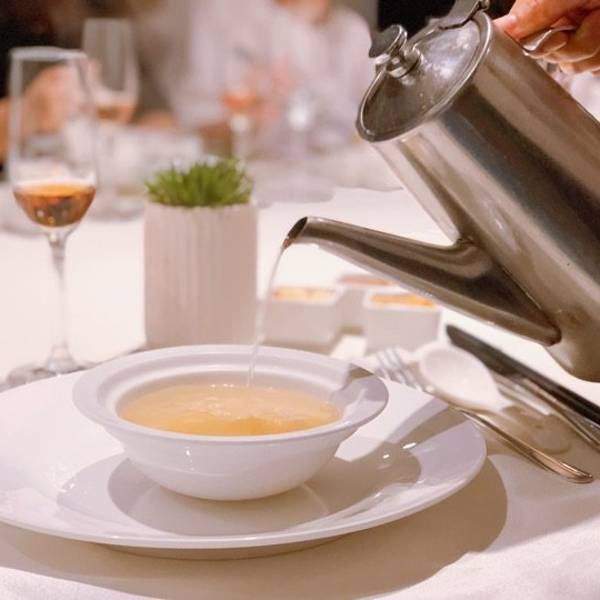酒这个东西,坦诚说,我能喝不少,但甚少研究。本质上并不爱酒,但是偶尔的酒局,微醺的氛围的确格外美好。至于酒本身让我有强烈愉悦感的,去年底朋友送的一瓶桃红意外让我感到惊艳。 所以这次,黑珍珠一钻的【黑明餐厅】举办的90后专场桃红葡萄酒会,我自然不舍得错过~ 之所以定位在90后专场,大抵是因为,半熟状态的90后,就像桃红葡萄酒一般,浓淡相宜,回味柔和,桃红的酿造工艺有很多种,但始终带着“半熟”气质,相较于红葡萄酒,桃红的口感更加清淡爽口,带着水果的鲜甜气息。 这样的桃红,不管是搭配红肉抑或海鲜,都很和谐。 餐前的罗萨托意大利桃红气泡酒,度数较低,气泡绵密,喝一口,清新果香萦绕徘徊,开启今晚愉悦的晚宴。 果醋沙拉鲍鱼,超级弹嫩饱满的大只鲍鱼,搭配底部裹满果醋的生菜一起入口,慢慢咀嚼,鲍鱼的鲜美被果醋若隐若现地点缀。这时候,抿上一口安茹珍藏桃红,更是美妙。 慢熏烤三文鱼腩,带皮脂肪感恰到好处,微微胶质,咸鲜味美,肉质绵密。 低温慢烤牛肉,低温做法不会过干过硬,挤点青桔汁味道不会死板。这时候,倒上一杯带着杨梅气息的贝贝桃红气泡酒,入口体验更圆润。 酸汤龙利鱼,带皮口感很是完美,酸爽微辣很够味,下面的粉q弹爽滑,也点赞。利思酒庄桃红,最让人甜蜜的一款,搭配龙利鱼的酸辣,刚刚好。 春韭煎老蛏,海蛎煎的烹饪方式,用老蛏取代海蛎,更加爽脆饱满,满满大自然气息的韭菜锦上添花。 皮嫩肉滑还带汁的干煎竹虫鸡,搭配保罗领地桃红葡萄酒,慢慢回味,鸡肉的余香夹杂着草莓和覆盆子的清香在口中回旋,真是以前不曾有过的体验呢~ 紫菜饭颗粒分明,每一粒米都被紫菜末包裹,油香、米香、紫菜香和肉香交织,很是喜欢。 鸡汤汆象拔蚌,一直是店内很受欢迎的汤品,象拔蚌生食上桌,现场浇上鸡汤烫熟,这样的口感既柔嫩,又爽脆,鸡汤融进淡淡的鲜甜,不好喝你来打我! 餐后的香草冰淇淋也是颜值口味兼具,香甜润滑奶香浓郁,简简单单的很到位。 一般的酒局大多觥筹交错,不记得喝了什么,只记得说了什么,或是平日的用餐配酒,也大多是一瓶酒喝到底,今天的六瓶桃红搭配不同的食物,确是打开了新世界,很享受,很喜欢,很开心。