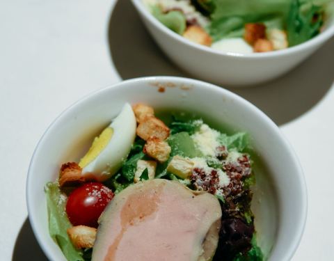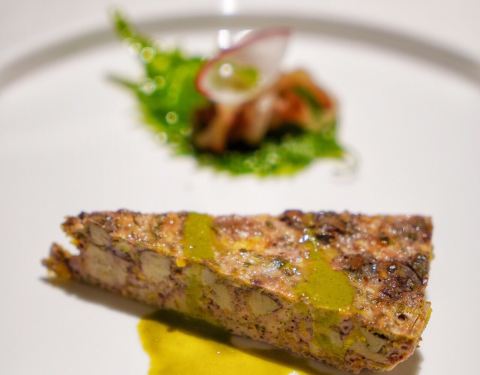 - 蔬菜沙拉拼清酒鹅肝,鹅肝的份量不小,口感绵密,吃起来还是很不错的