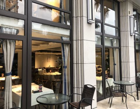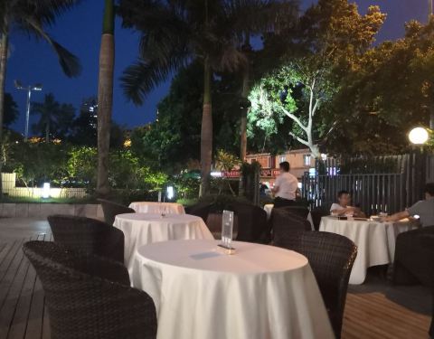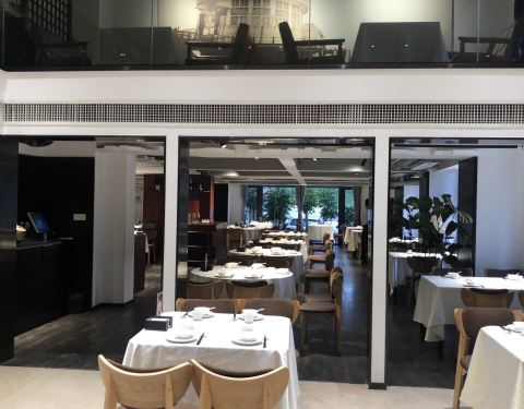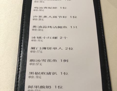 餐厅门口的路旁可以停车,不过车位不多,餐厅旁边的金源大厦和斜对面的禹洲广场都有比较多的停车位。餐厅的下午营业时间5点开始,中午开到2:30。室外院子有位置,不过今天室外风比较大,坐室内。餐厅灯光明亮,乳白色的大理石地板看起来很清爽干净。餐厅前台为长条形一体的桌子,背景为黑色组合板以及咖啡和调教台一体,看起来简单大气。餐厅分为上下两层,半敞开的双层格局显得空间比较大,不过二楼楼层不高。来的时候还有10分钟才营业,坐在一旁等待,工作人员还在做最后的准备,不过等候过程中没有提供饮用水,写点评的时候已经5:02,没有人过来领我去座位,这一点有待提高。这下好了,刚刚说二楼会压抑,我就被安排到了二楼,其实还好,可能我没有一米八……iPad点餐,不过系统设计有点问题,选择了就变成下单,我以为直接厨房那边就收到了,赶紧叫工作人员询问,其实点了下单不是真的下单,得改进一下。点了10个菜,厦门薄饼还得两份起点,很是难过,都想吃,又怕吃不完。接下来说菜色。厦门薄饼作为特色菜,单人份必须两份起点,分为油炸和非油炸两部分,非油炸的一半口味一般,不推荐,油炸的口感酥脆,可以尝试,一个人去的朋友可以只点一份,和服务员说,你的那一份都油炸就好了(我不清楚,点了两份,上菜后恍然大悟)。鸡汤贵妃蚌推荐,贵妃蚌非常滑嫩,鸡汤清淡爽口,可惜这是比较前面上的菜,建议可以后上。鹅肝大推荐,选用的鹅肝肥厚,外焦里嫩,搭配的烤沙梨也火候恰到好处,十分解腻。黄油蒜烤活鲍鱼不推荐,都是高温后黄油独特的焦香味和蒜味,丝毫吃不出鲍鱼本身的味道。黑椒煎猪扒,沙茶煮大斑节虾和低温慢烤牛肉都中规中矩,牛肉上面的粗盐太过粗大,冷不丁咬到容易吓到。冰镇小红螺一点不小,非常好吃。酸汤雪花鱼,汤酸微辣,鱼嫩滑爽口,可惜鱼无味,不推荐。
