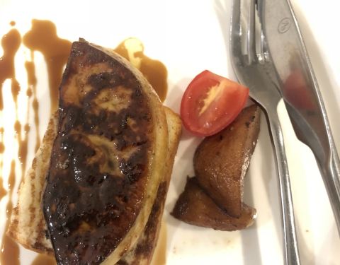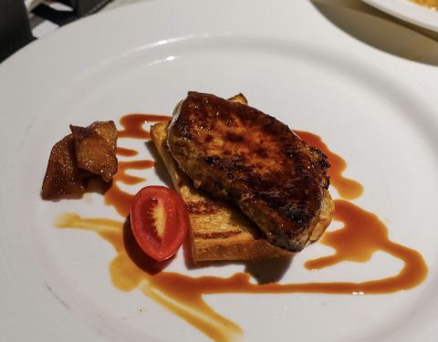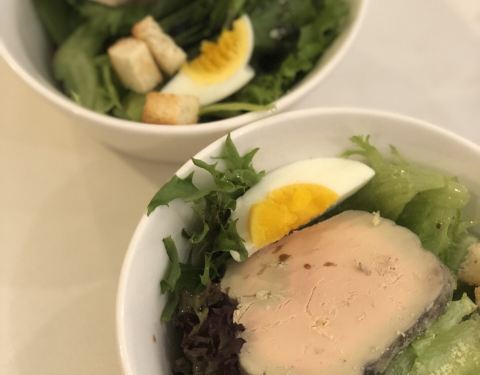 蔬菜沙拉拼清酒鹅肝,鹅肝的份量不小,口感绵密,吃起来还是很不错的