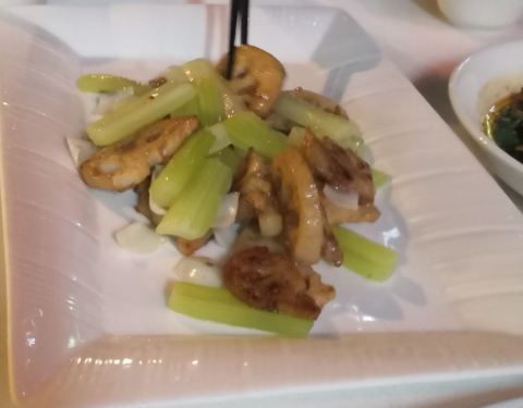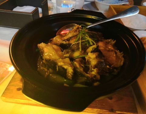 干煎竹虫鸡,外皮焦香内里汁水充沛,姜丝的加入使鸡的香味挥发的淋漓尽致,吃完之后有点意犹未尽。