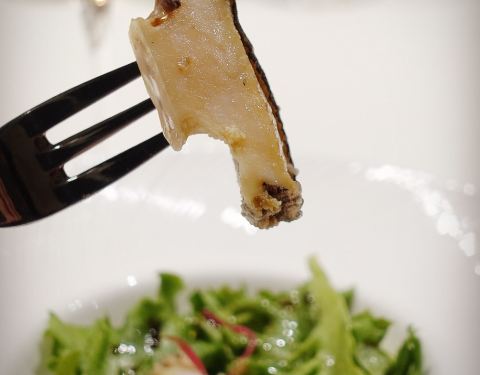 1 / 果醋鲍鱼沙拉 黑明餐厅食材用得很舍得,从这道果醋沙拉鲍鱼便可得知:鲍鱼很大只,Q弹饱满,可以搭配底部的占了果醋的生菜一起食用。 鲍鱼与蔬菜、果醋的搭配很巧妙,正如Yann主厨所描述的:“入口咀嚼的时...