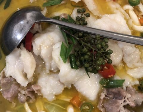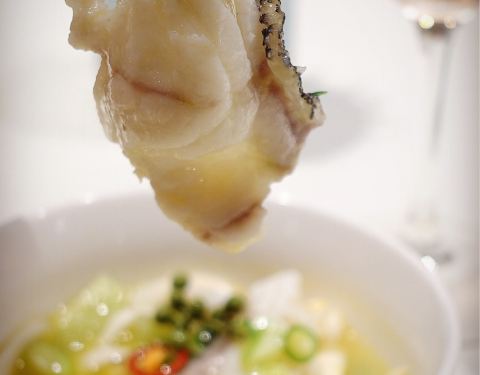 酸汤龙胆鱼,酸汤浓郁鱼肉细嫩粉条有嚼劲,一道绝佳的开胃菜。