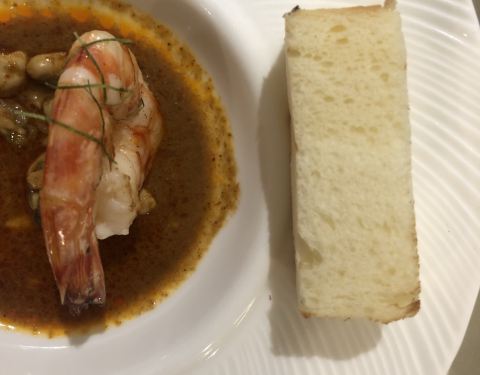 黑明餐厅,室内装修感觉在湾仔的私房菜吃闽菜。厦门薄饼的摆盘充分显示出了一阵操作猛如虎、事后洗碗洗到哭的本质,三种酱料(还有芥末!)加上用大葱点酱想法好评,但是缺点也有点明显:馅料虽然基本齐全,但是偏素不够香,薄饼皮也比较单薄,好在香菜海苔炸米粉管够撑起口感一片天。 春卷之外两道贝类也很好吃。鸡汤汆海蚌肉质和火候都很好,入口脆甜,舌尖带我去漳港!可惜鸡汤和海蚌相比逊色一些。另外黄油煎鲍鱼是真的又香又嫩,黄油煎香的香气仿佛打开鲍鱼的新世界,值得高分。土笋冻沙虫味浓,也在中上水准。 除了闽菜之外其他的菜式点的一般:红酒鹅肝火候差一点,里面不够香;酸汤煮雪花鱼,连颜色都交不足货更遑论味道了。