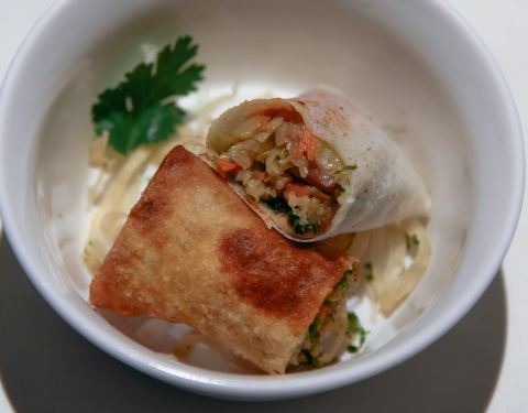 ...明显:馅料虽然基本齐全,但是偏素不够香,薄饼皮也比较单薄,好在香菜海苔炸米粉管够撑起口感一片天