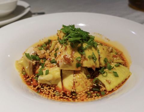 ...个是冰镇泡椒口味的笋以及川味口水鸡,还有海参汤,芝士焗龙利鱼、黑刺苋炖猪肉汤等一些店里的推荐菜