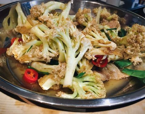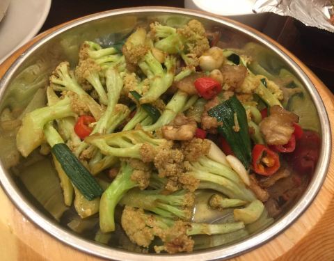花菜炒肉不错,加了孜然粉,很多朋友喜欢…嗯…鸡丝笋干什么的不好吃,有点浪费