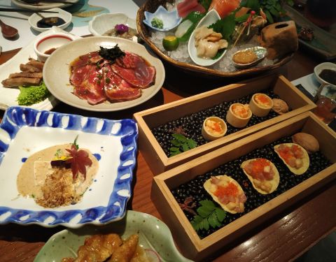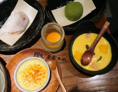 这家“匠和风精致料理”的装修和别的日料店比起来算是普通的,座位之间略显拥挤,走动起来不是很方便。这里的自助餐是用iPad点单,并不需要自己起身去取食,座位挤一点,影响倒不是很大。 综合刺身拼盘没有什么惊喜,同时也不会失望,比较喜欢里面的甜虾。我觉得拼盘就是让你把每一款都尝试一下,确定哪一款才是你最喜欢的,我比较喜欢里面的甜虾。甜虾大小适度,口感也很好,很鲜甜,吃着有点粘,后来加点了好几份。 蒲烧鳗是我很喜欢的一道料理,每次吃日料会都会点它,很浓郁的香,但是不会腻,这个也吃了双份。 鳗鱼玉子蒸 因为有鳗鱼就点了它,蒸蛋里面加了蟹肉,但是蒸蛋不够嫩滑,我还是比较喜欢吃单纯的蒲烧鳗。 和风熏牛肉,是看之前有人的点评说不错,点了一份三个人没吃完,这道菜做的不是适合我们的口味。 芥末章鱼是很小的一份,幸亏是很小的一份,要不然要浪费了。 胡麻豆腐是我喜爱的,凡是豆腐都喜欢,很香,很嫩。 厚切牛舌,这个建议要趁热吃,刚上来的时候极好吃,后面凉了,味道会差一点。 铁板鹅肝,这也是一道要趁热吃的菜,鹅肝香味很浓郁,趁热吃不会觉得腻,如果时间放长了,鹅肝的口感会差很多,而且吃起来会有点腻。 东寺海参养老蒸,说实话,如果不是对着菜单根本吃不出这道菜是什么东西做的,吃完不会想念的一道菜。 鱿鱼卷口感很好,也不会太咸,鱿鱼的大小也很合适,本来还想重复点一次的,但是伙伴好像不是很喜欢这道。 猪颈肉真可以用,又香又嫩又爽口来形容,好吃到有点惊喜。 牛蒡手卷是我吃过的大小最合适的,不是很大,上来的时候要赶紧吃了,不然等一下就不脆了就不好吃了。 芝士焗扇贝,我喜欢芝士,也喜欢扇贝,但是不是很喜欢芝士焗扇贝,感觉太腻了。 焦糖布丁,值得推荐。 布丁香甜嫩滑,上面那层焦糖脆脆的,那种焦香和布丁的甜香是不一样的,但是配合在一起感觉相当美妙。 杨枝甘露,真是不止颜值高,而且味道好,如果不是已经吃的很饱了,肯定会多加一份。 大福果也很值得推荐,皮非常软糯,而且不知道用了什么方法,感觉还带着一点点脆,反正就是好吃。 日料店的服务没得说的一个字好,两个字很好。