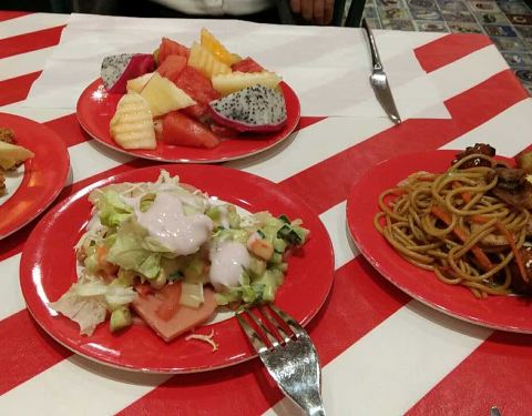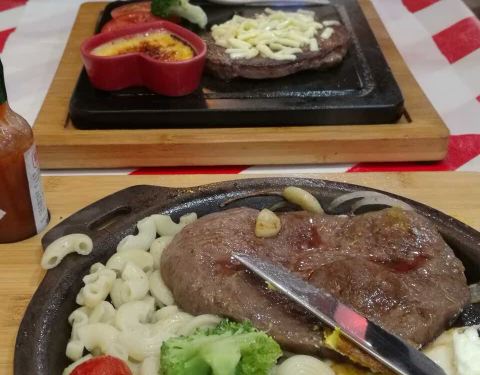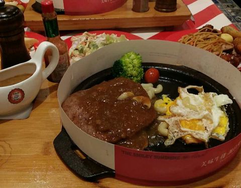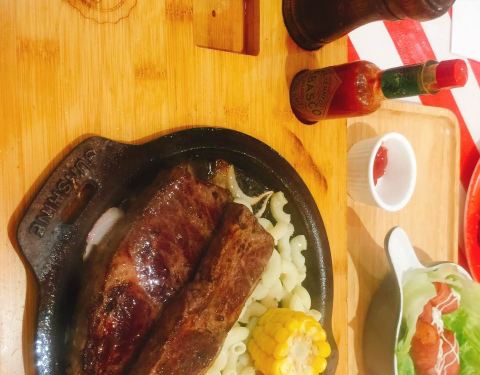 火焰牛小排牛排太老了,不是很嫩,环境卫生不错,自助食品还是很丰盛的,其他都不错!