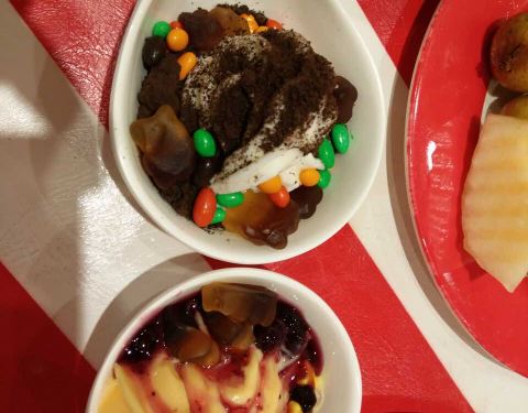 不错的牛排店,还有免费的棉花糖,水果,小吃