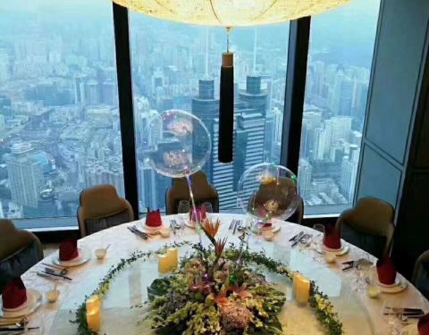 位于京基100大厦95楼的空中餐厅,不仅能看到地王大厦,梧桐山和深圳河的景观也尽收眼底,很适合良朋聚会,商务宴请,这里的菜品中西结合,最好先预约!生日定包房会提前把房间装饰好桌上还会摆上花瓣和蜡烛,超级浪漫!
