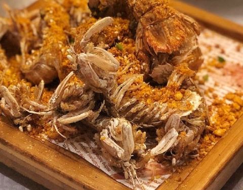 谷谷鸡象山海鲜店国庆期间晚上吃饭还要翻桌子,我们被安排在第二轮,7点多才开始开吃,点了他们家的必点菜椒盐龙头烤,感觉炸的不是很脆,手拆蟹粉蹄筋不错,很鲜,蹄筋有嚼劲,不错,虾汤泡饭特别好吃,米粒都是一粒一粒的,吃的出虾的鲜香味,推荐一个。
