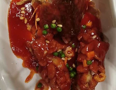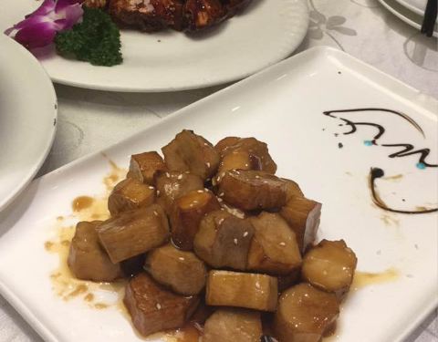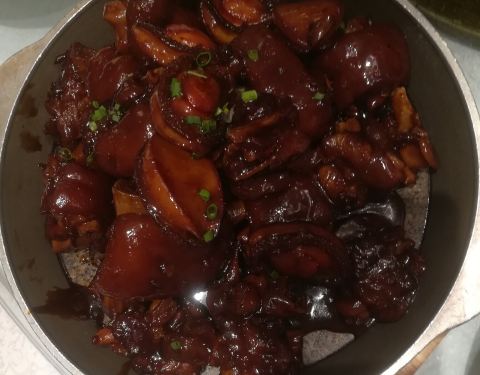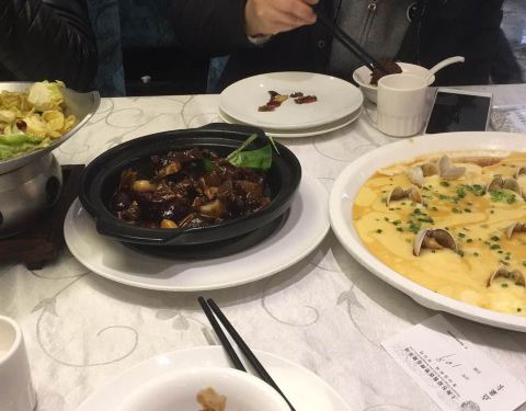 谷谷鸡象山海鲜城生意非常火爆,包房基本要半个月前预定才会有,我们只能去大堂吃了,点了秘制葱烤虾,葱煸炒的很香,虾浓油赤酱的,味道有点甜,谷谷鸡反而无功无过,招财进宝就是鲍鱼烧猪手,一盘上来里面有六只小鲍鱼,8.9块猪手,鲍鱼我没吃到,猪手味道不错,特别入味,有咬劲,感觉满满的胶原蛋白。