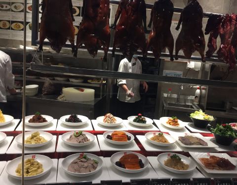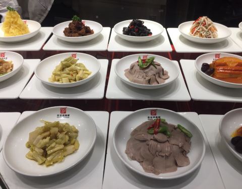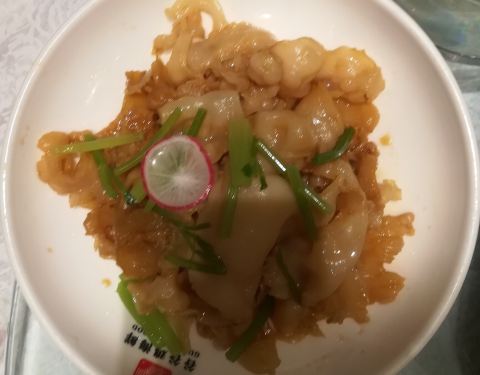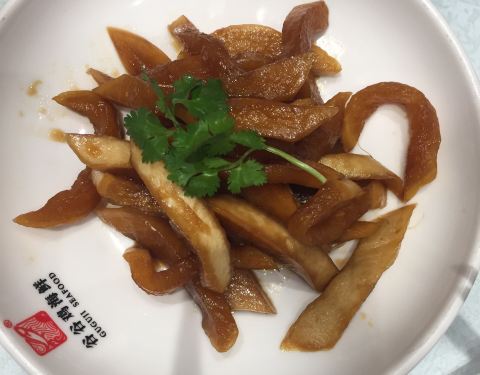 谷谷鸡象山海鲜城(控江店)称其海鲜城还真是名副其实,超级大,冷盘间是透明玻璃的,可以看到厨师在里面配菜。我们冷盘有目鱼大烤和萝卜干,目鱼吃的出很新鲜,肉很有咬劲,浓油赤酱的很入味,萝卜干咸中带点甜,脆脆的非常爽口,二个菜叫的都不错。