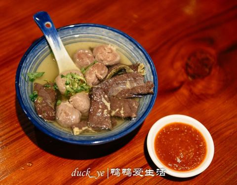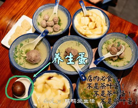 #鸭鸭旅食记#说到客家,必须要提的是客家小吃。客家小吃就地取材,具有独特的风味,往往被游子们用以寄托思乡之情。现在,不用去永定了,几个倔强的客家青年在厦门前埔健身公园附近开的这家小店——半年粮,便能吃上纯正的永定土楼客家小吃。每天的食材从200公里外的永定老家运下来,早上在店内现打牛肉丸。这个被称为厦门最大的牛肉丸,巨无霸蛮牛丸,比网球都还大!由于打制过程中不添加任何别的材料,就是纯牛肉去捶打,因此肉味十足,非常的鲜!值得一提的是汤是他们家的一大亮点,清澈透亮,都是牛肉原汤,鲜美无比,即使你购买外带牛肉丸,也会送你一包原汤哦,个人觉得,他们家比肉更好吃的,莫过于这个汤了!姜糖豆花也是进店必点,熬得浓稠的姜糖汁是一大亮点,姜糖容易化开,如果觉得口味不够,还可以自己添加。安利一个店内的隐形彩蛋,只有老客户才懂,那便是低调有内涵的养生蛋!她可不是茶叶蛋哦!这个看似普通的蛋,是由红枣、黑枣、枸杞、可乐、甘草以及秘制药材一起熬煮8小时而成,每天都供不应求,来晚了还吃不上哟!以蛮牛精神做良心菜,用料实在,人均10元起便能吃饱,不愧是被周边居民封为“厦门最土客家小吃店”。