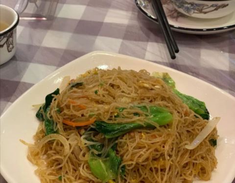 油焖大虾加虾盖面,味道还行,虾不是很大,吃的差不多了加份盖面,味道很棒。 虾球,这个值得推荐,虾个头比较大,很入味,黄瓜略多,但是很清甜。 炒米粉,一致好评,就是份量略少。 蒜蓉生蚝,很新鲜,不错。