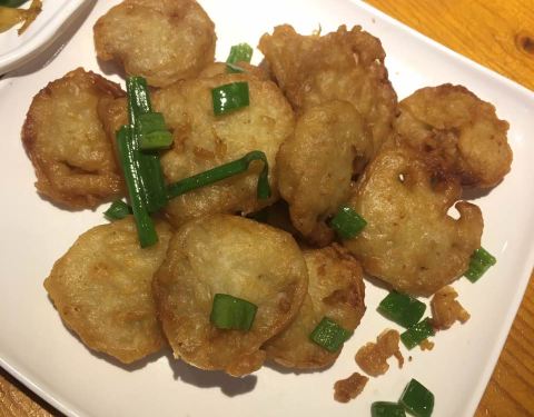 - 虾球,这个值得推荐,虾个头比较大,很入味,黄瓜略多,但是很清甜。 蒜蓉生蚝,很新鲜,不错