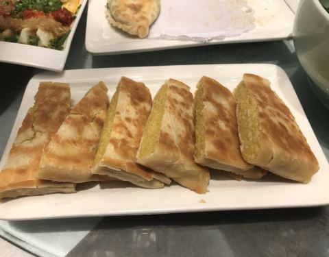 妈妈黄米烙是招牌主食,薄薄脆脆的饼皮包着粘粘的黄米,香脆美味。每个三鲜水饺里都有一个完整的虾仁