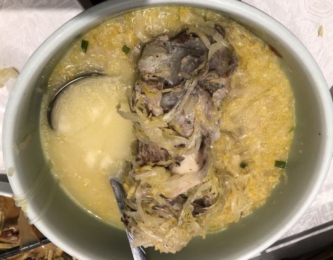 想吃锅包肉和东北大拉皮了,就来到望京凯德Mall的三楼的北李妈妈菜。北李的性价比超高,周末经常要等位,平时的中午上座率也70[%]左右。点的几道菜都很家常、顺口,不油不腻;主食黄米烙微甜,外皮酥脆,香甜可口。