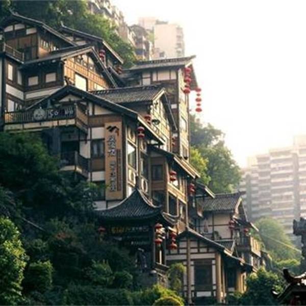 乘坐111、112路外环、114路至【洪崖洞】站;