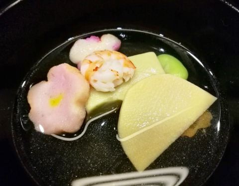 感觉是我吃过的最精致的日料了非常赞 【前菜】抹茶豆腐、扇贝裙边和三文鱼慕斯,扇贝裙边很好吃,配的酱料很提鲜,完全吃不到腥味,推荐~抹茶豆腐和慕斯比较有新意,不过不太吃的惯。 【清汤】里面有一大块鳗鱼肝...