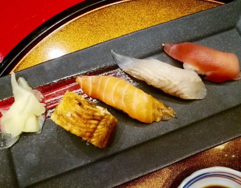 感觉是我吃过的最精致的日料了非常赞 【前菜】抹茶豆腐、扇贝裙边和三文鱼慕斯,扇贝裙边很好吃,配的酱料很提鲜,完全吃不到腥味,推荐~抹茶豆腐和慕斯比较有新意,不过不太吃的惯。 【清汤】里面有一大块鳗鱼肝,汤也很鲜 【刺身】三文鱼、加吉鱼、金枪鱼,食材很新鲜,选的长台,对面就是大厨的加工台,边看边吃也是一种享受哇~ 【炸物】秋葵、茄子和土豆,配了抹茶粉。外酥里嫩,好像吃到了食材的鲜味。真心好吃~推荐~ 【主食】鳗鱼三吃:鳗鱼、鳗鱼饭、茶泡鳗鱼饭。鳗鱼给的真心实惠,而且味道好配了小菜。吃得相当饱。非常棒! 【甜品】店家自制的冰淇淋,选了抹茶味道的,抹茶味道浓郁,非常好吃! 另外店内环境不错,随处都可见到精致的小心机,而且每道菜做得都非常的精致,感觉自己在吃艺术品哇~ 服务也非常棒,服务员周到热情,很赞! 很值得拔草的店