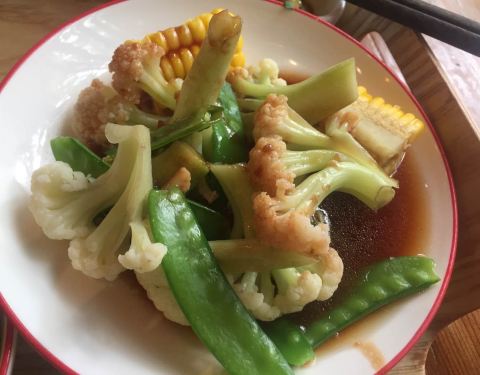 愚园路有一家,番禺路上又新开了这家,店面很小,胜在干净,荤素搭配也好,点菜时选择余地大。店名很有文艺气息,挨着影城倒也合适