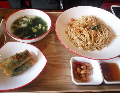 - 朋友在交通大学培训,中午聚聚,就找到了这家小吃,吃了馄饨,拌面,猪排,饮料,共54元,很不错