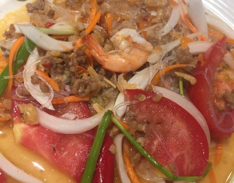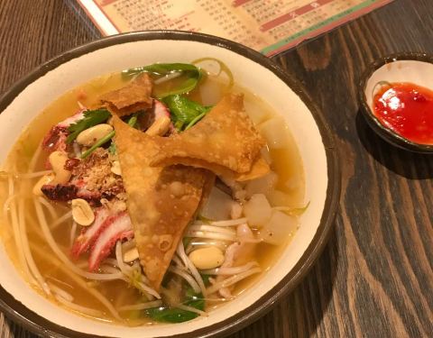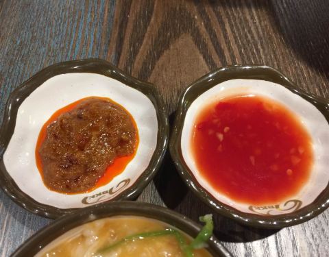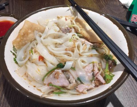 点了招牌粿条和冬阴功海鲜粥。味道不错,就是粥里面也放了辣椒,这点有点不能接受。粿条很好吃,里面的墨鱼丸很弹。辣椒酱自选。还不错。