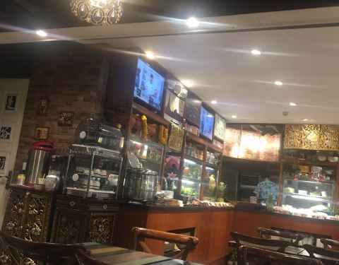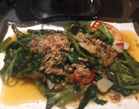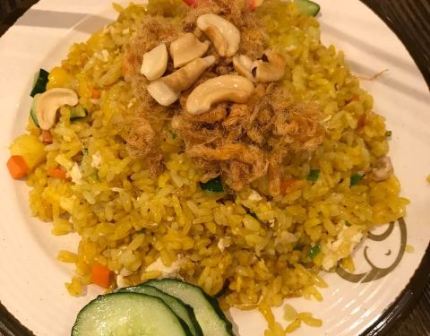 泰式装修风格,菠萝炒饭,用料挺足,菠萝腰果虾仁,颜色好看,口味不算是很惊艳
