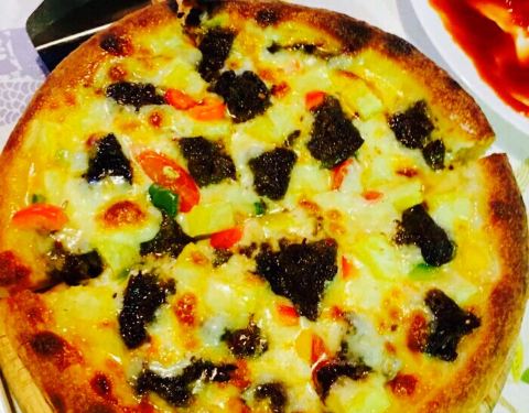菜品不错,老板娘很用心。点了老板娘推介的披萨和牛排。披萨是纯手工的,起司的拉丝很棒,馅料很足,牛排的味道也不错。细心的老板娘送了一杯红酒,搭配牛排真是棒极了。就餐的人不少,菜品上的有些慢。
