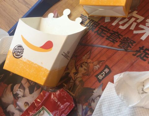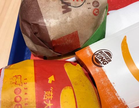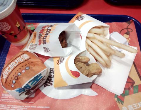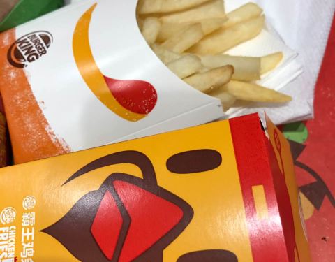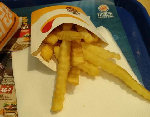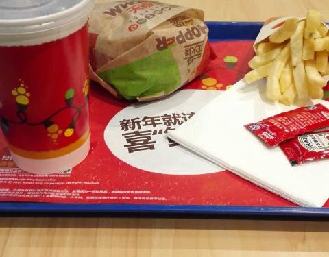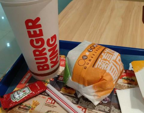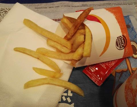 ...,有挺多家汉堡王的汉堡,王的汉堡,可以说是挺好吃的,然后呢,薯条跟那个霸王鸡条也是挺好吃的东西