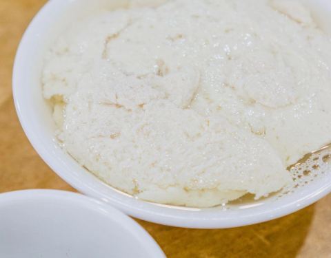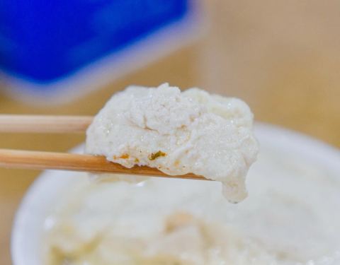 豆花白生生的,细嫩绵扎,直接吃有纯粹的豆香与甘甜,蘸上作料又是满口麻辣鲜香