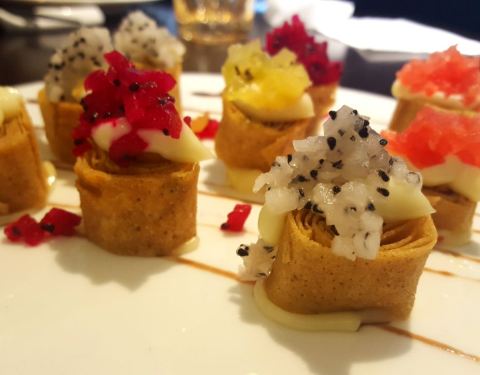 ...路线,【牛油果油条虾】、【含苞欲放 椰奶冻】、【一口香榴莲酥】从餐盘到摆盘都很特别,味道也不错