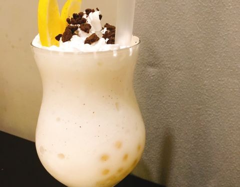 名字很美…可以說事實是一道甜品,白巧克力球裡面牛奶小方,配上淋上的巧克力醬牛油果油條蝦,和含苞...