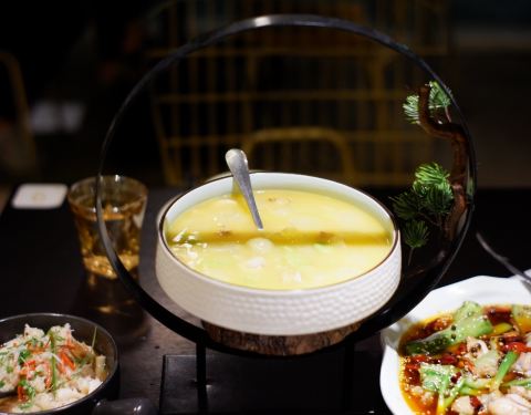 昨天整座大悦城的人估计都集中在8层摩天轮天台了吧毕竟白宇粉丝们都废寝忘食地追星去了~梅园春晓颇为诗情画意的店名,属于老少咸宜的创意本帮菜,口味无功无过。 工作日晚市店内生意冷冷清清,放弃华而不实的新颖菜式,转而追求清心寡欲的家常系列,秘汁爽脆就是牛百叶和金针菇凉拌双拼,石锅蚌肉老豆腐和碧绿珍珠串仙贝的汤底很鲜,️春晓招牌蛙辣度我也能接受,表白里面酥烂的芋奶块。
