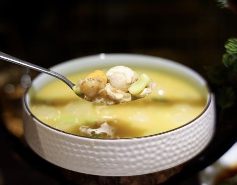 - ...路线,【牛油果油条虾】、【含苞欲放 椰奶冻】、【一口香榴莲酥】从餐盘到摆盘都很特别,味道也不错